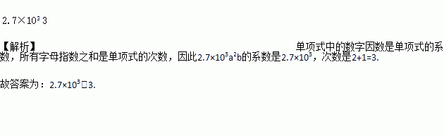 填空:单项式2.7×103a2b的系数是________,次数是______.