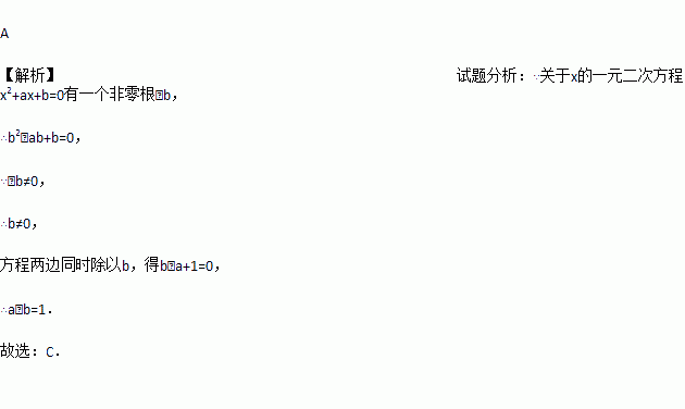 已知关于x的一元二次方程x2+ax+b=0有一个非零根﹣b,则a﹣b的值为( )