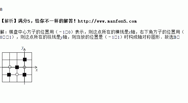 小莹和小博士下棋,小莹执圆子,小博士执方子.如图,棋盘中心方子的位置用(﹣1,0)表示,右下角方子的位置用(0,﹣1)表示.小莹将第4枚圆子放入棋盘后,所有棋子构成一个轴对称图形.她放的位置是( )