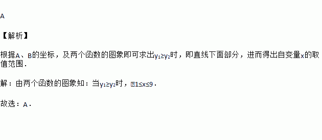 如图,一次函数y1=mx+n(m≠0)与二次函数y2=ax2+bx+c(a≠0)的图象相交于两点A(﹣1,5)、B(9,3),请你根据图象写出使y1≥y2成立的x的取值范围( )