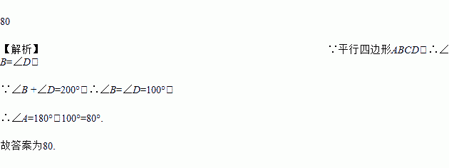 在□ABCD中,∠B +∠D=200°,则∠A=__________°.