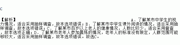 C. 了解某市百岁以上老人的健康情况 D. 了解某市老年人参加晨练的情况
