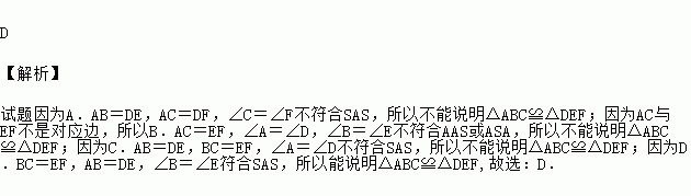 能说明△ABC≌△DEF的条件是( )