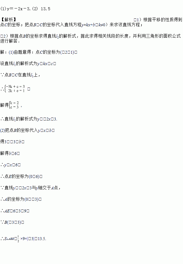 如图,直线l1在平面直角坐标系中,直线l1与y轴交于点A,点B(-3,3)也在直线l1上,将点B先向右平移1个单位长度,再向下平移2个单位长度得到点C,点C恰好也在直线l1上.