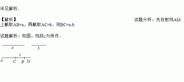 已知线段a、b,求作线段c,使c=a﹣b.