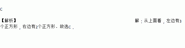 由6个小正方体搭成的几何体如图①所示,它的主视图是图②,则它的俯视图为( )
