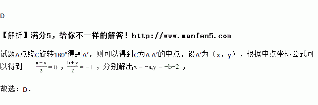 如图,将△ABC绕点C(0,﹣1)旋转180°得到△A'B'C,设点A的坐标为(a,b),则点A'的坐标为( )