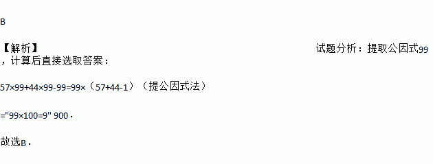 利用因式分解简便计算57×99+44×99-99正确的是( )