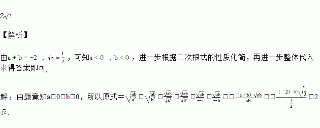 已知a+b=-2,ab=,求的值.