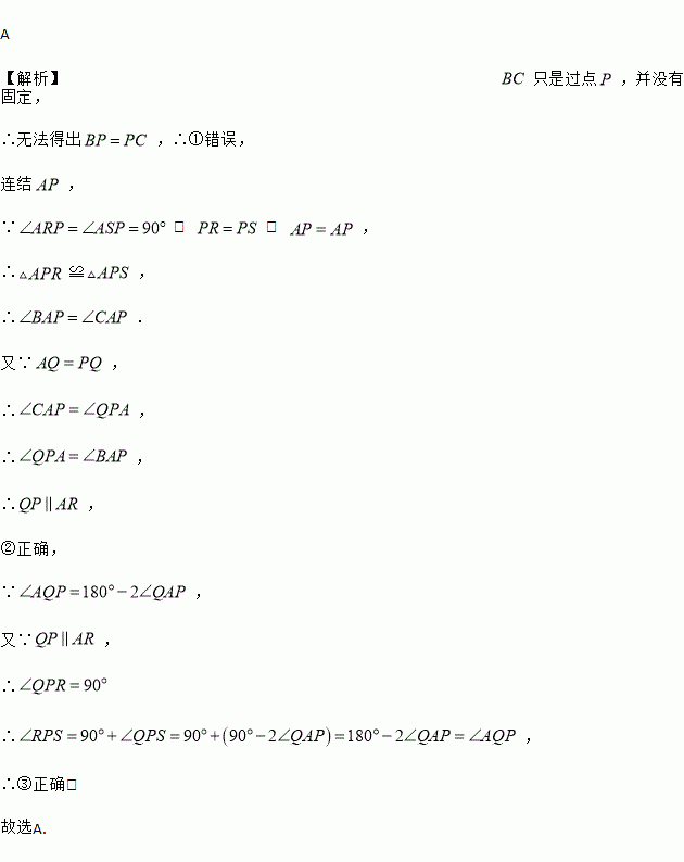 A 【解析】只是过点,并没有固定, ∴无法得出,∴①错误, 连结, ∵, , , ∴≌, ∴. 又∵, ∴, ∴, ∴, ②正确, ∵, 又∵, ∴ ∴, ∴③正确, 故选A.