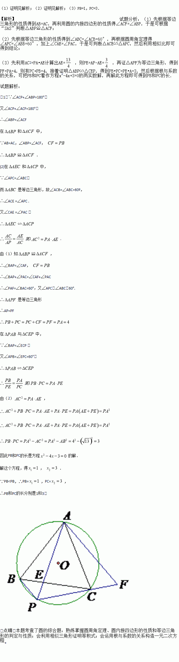 如图,正三角形ABC内接于⊙O,P是BC上的一点,且PB<PC,PA交BC于E,点F是PC延长线上的点,CF=PB,AB=