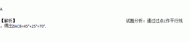 如图,C岛在A岛的北偏东45°方向,C岛在B岛的北偏西25°方向,则从C岛看A、B两岛的视角∠ACB的度数是( )
