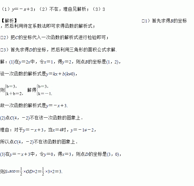 (3)若该一次函数的图象与x轴交于D点,求△BOD的面积.