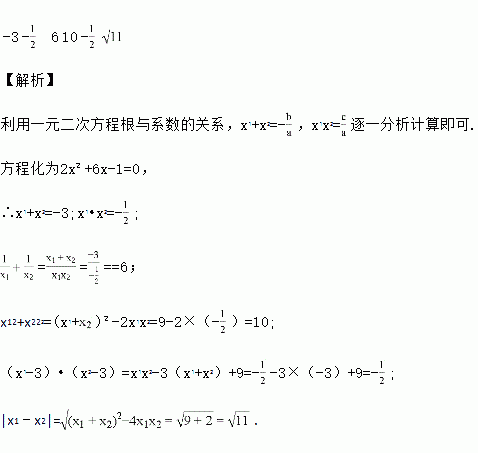 若2x(x+3)=1的两根分别为x1,x2,则x1+x2=_____,x1x2=_____,