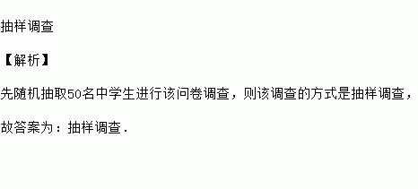 为了解中学生获取资讯的主要渠道,设置“A:手机,B:电视,C:网络,D:身边的人,E:其他”五个选项(五项中必选且只能选一项)的调查问卷,先随机抽取50名中学生进行该问卷调查,则该调查的方式是_____.(填普查或抽样调查)