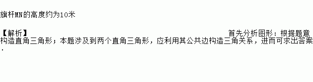 如图,某数学兴趣小组在活动课上测量学校旗杆高度,已知小明的眼睛与地面的距离AB是1.7m,看旗杆顶部M的仰角为45°,小红的眼睛与地面的距离CD是1.5m,看旗杆顶部M的仰角为30°.两人相距23m且位于旗杆两侧(点B,N,D在同一条直线上).请求出旗杆MN的高度.【参考数据: