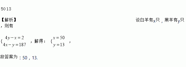 羊圈里白羊的只数比黑羊的脚数少,黑羊的只数比白羊的脚数少,则白羊有______只,黑羊有______只.