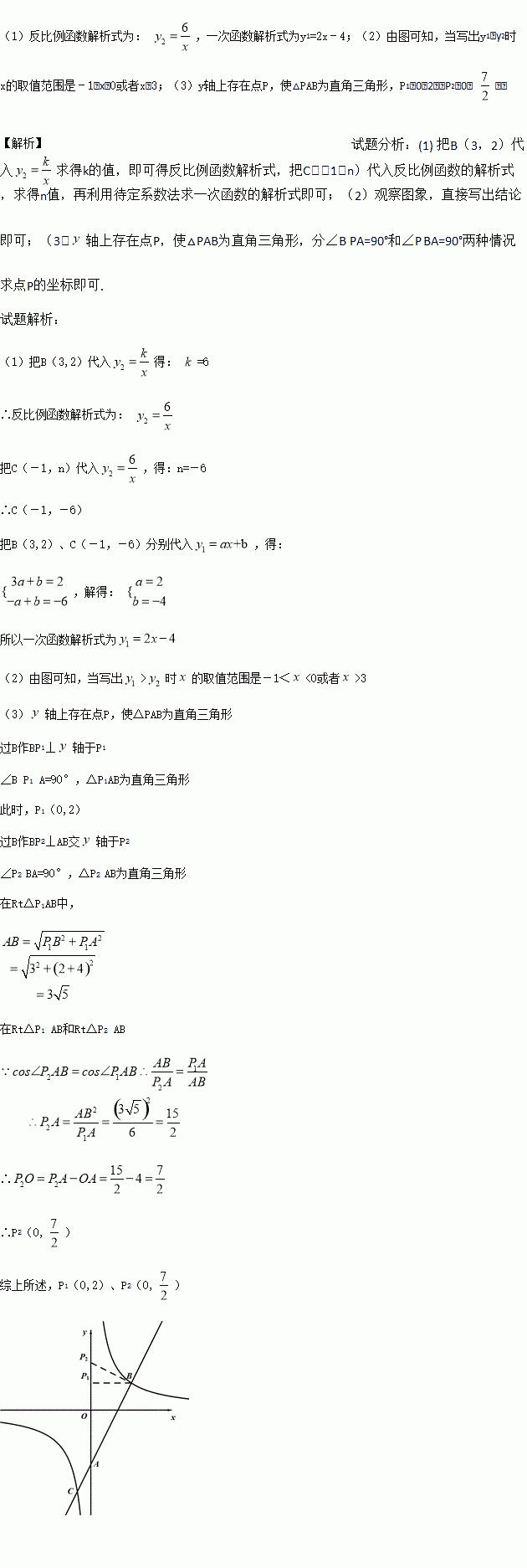 (c≠0)的图象相交于点B(3,2)、C(﹣1,n).