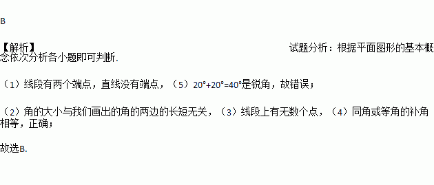 (1)线段有两个端点,直线有一个端点;
