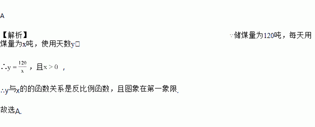 红星中学冬季储煤120吨,若每天用煤x吨,则使用天数y与x的函数关系的大致图象是( )