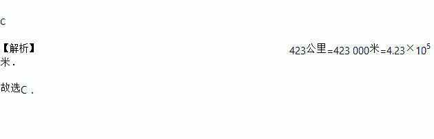 我国“神七”在2008年9月26日顺利升空,宇航员在27日下午4点30分在距离地球表面423公里的太空中完成了太空行走,这是我国航天事业的又一历史性时刻.将423公里用科学记数法表示应为( )米.