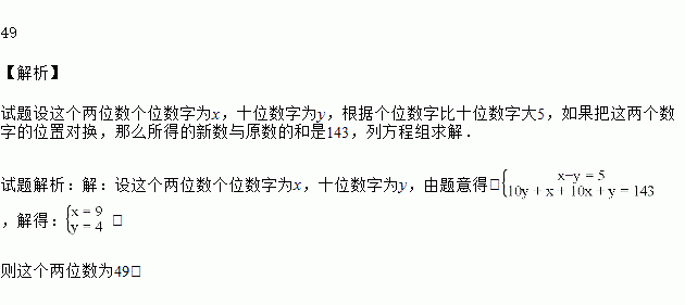 有一个两位数,个位上的数比十位上的数大5,如果把这个两位数的两个数字的位置对换,那么所得的新数与原数的和是143.求这个两位数.
