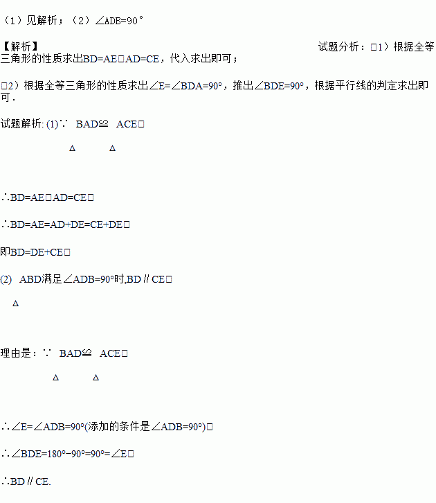 如图,A,D,E三点在同一直线上,且△BAD≌△ACE,试说明: