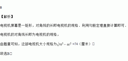 一部电视机屏幕的长为58厘米,宽为46厘米,则这部电视机的大小规格为(实际测量误差忽略不计)( )