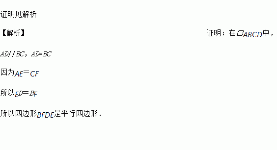 如图,在平行四边形ABCD中,点E、F分别在AD、BC边上,且AE=CF.
