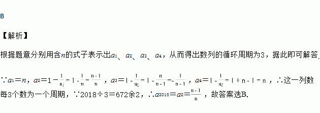 A. a2018=n B. a2018= C. a2018= D. a2018=