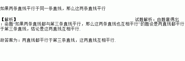 把命题“平行于同一直线的两直线平行”写成“如果…,那么…”的形式: .