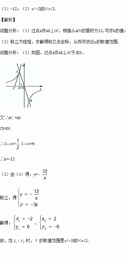如图,正比例函数的图象与反比例函数的图象交于、两点.点在轴负半轴上,,的面积为12.