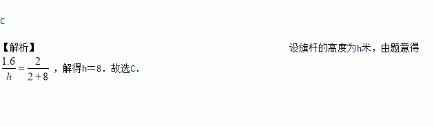 如图,为估算学校的旗杆的高度,身高1.6米的小红同学沿着旗杆在地面的影子AB由A向B走去,当她走到点C处时,她的影子的顶端正好与旗杆的影子的顶端重合,此时测得AC=2m,BC=8m,则旗杆的高度是( )