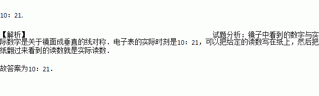 小强站在镜前,从镜子中看到镜子对面墙上挂着的电子表,其读数如图所示,则电子表的实际时刻是 .