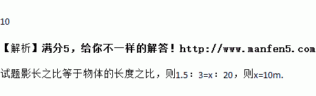 在相同时刻的物高与影长成比例,如果高为的测杆的影长为1m,那么影长为20m的旗杆的高是______