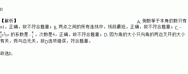 A. 倒数等于本身的数只有±1 B. 两点之间的所有连线中,线段最短
