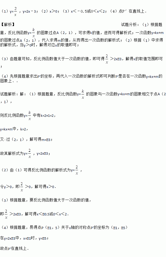 的图象与一次函数y=kx+m的图象相交于点A(2,1).