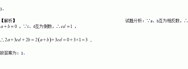 若a、b互为相反数,c、d互为倒数,则2a+3cd+2b=_______.