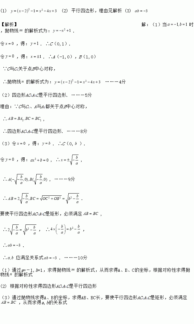 (1)当a=-1,b=1时,求抛物线n的解析式;