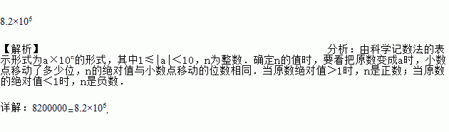 随着“一带一路”建设的不断发展,我国已与多个国家建立了经贸合作关系.去年中哈铁路(中国至哈萨克斯坦)运输量达8200000吨,将8200000用科学记数法表示为_____.