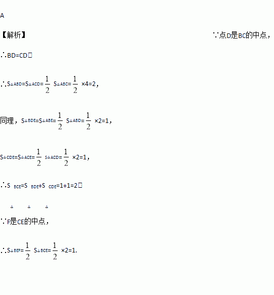 如图所示,在△ABC中,已知点D、E、F分别是BC、AD、CE的中点,且=4,则的值是( )