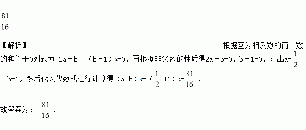 【解析】根据互为相反数的两个数的和等于0列式为|2a﹣b|+(b﹣1)2=0,再根据非负数的性质得2a﹣b=0,b﹣1=0,求出a=、b=1,然后代入代数式进行计算得(a+b)4=(+1)4=. 故答案为: .