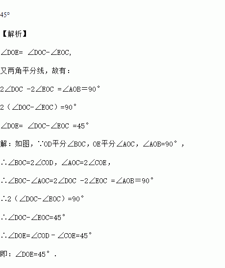 如图,∠AOB=90°,∠AOC是锐角,OD平分∠BOC,OE平分∠AOC.求∠DOE的度数.