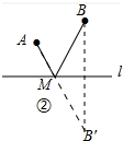 (2)如图②中,作点B关于直线l的对称点B′,连接AB′与直线l交于点M,此时MA+BM最小.![]()