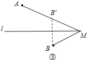 (3)如图③中,作点B关于直线l的对称点B′,连接AB′且延长AB′交直线l于点M,此时MA-BM最大.![]()