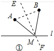 解答 解:(1)如图①中,作线段AB的垂直平分线交直线l于M,此时MA=MB.![]()
