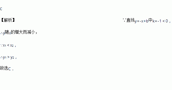 点(x1,y1)、(x2,y2)在直线y=﹣x+b上,若x1<x2,则y1与y2大小关系是( )