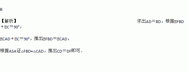 如图,在△ABC中,∠ABC=45°,F是高线AD和BE的交点,CD=4,则线段DF的长为( )