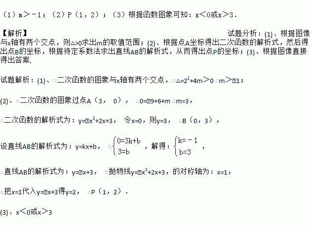 (2)如图,二次函数的图象过点A(3,0),与y轴交于点B,直线AB与这个二次函数图象的对称轴交于点P,求点P的坐标.