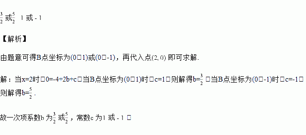 已知二次函数的图象经过点,且与轴交于点,若,则该二次函数解析式中,一次项系数为________,常数为________.